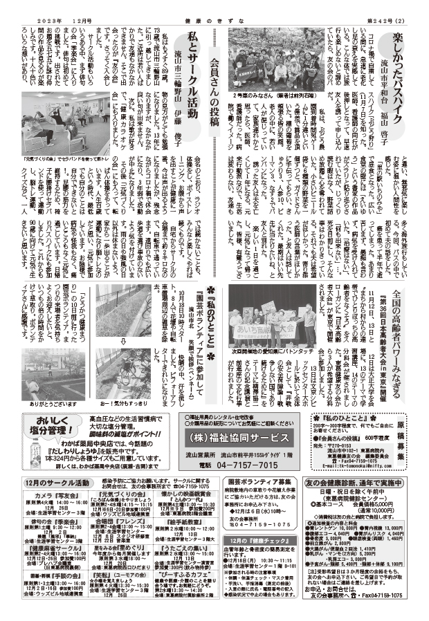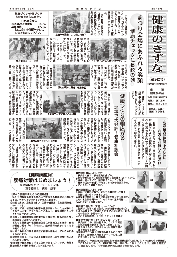 会員には東葛病院の新聞『東葛の健康』と「友の会」の新聞『健康のきずな』がご自宅に届けられ、日常の健康管理や病気の予防に役立てられています。