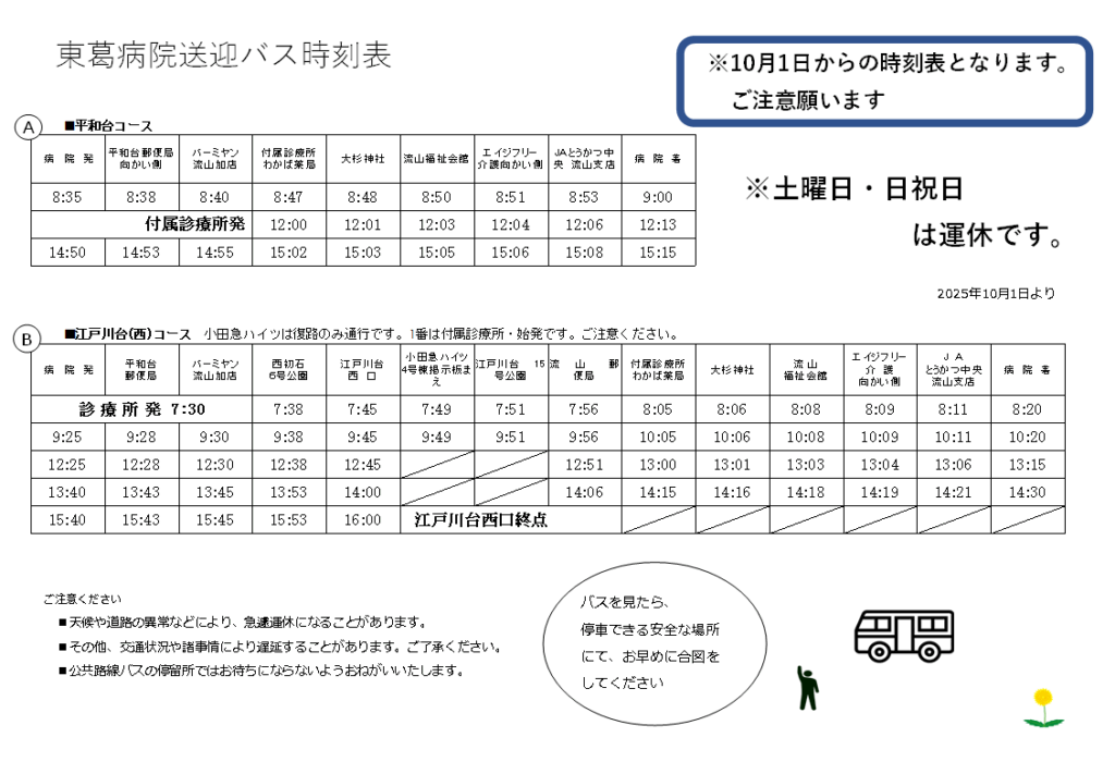 ・付属診療所への立ち寄りは、復路のみとなります。