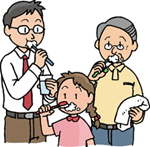 フッ素はいろいろな食べ物の中にも含まれていて安全なものですが、大量摂取による副作用もありえます。フッ素入り歯磨き剤は正しく使えば問題はありません。小さなお子さんは、お口をすすげるようになったら使い始めてください。