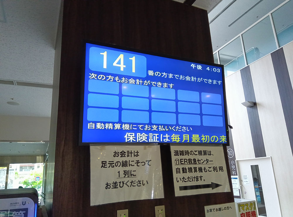 待合にあるモニターに会計番号が表示されたら自動精算機にてお支払い頂けます。